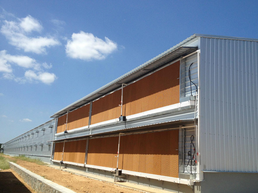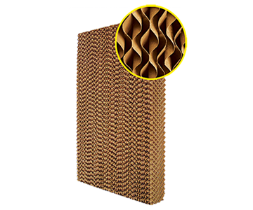 ZR濕簾降溫系統(tǒng)的降溫過程是在基核心-ZR紙墊內完成的。在波紋的纖維紙表面有層薄薄的水膜,當室外干熱空氣被風機抽吸穿過紙墊時,水膜上的水會吸收空氣中的熱量進而蒸發(fā)在水蒸氣,這樣經過處理后的涼爽濕潤的空氣就進入室內了。這自然的過程猶如風吹過水面一樣。