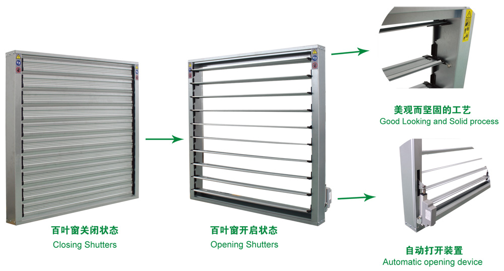 電動百葉,自動打開和關(guān)閉,耗能低,使用方便。